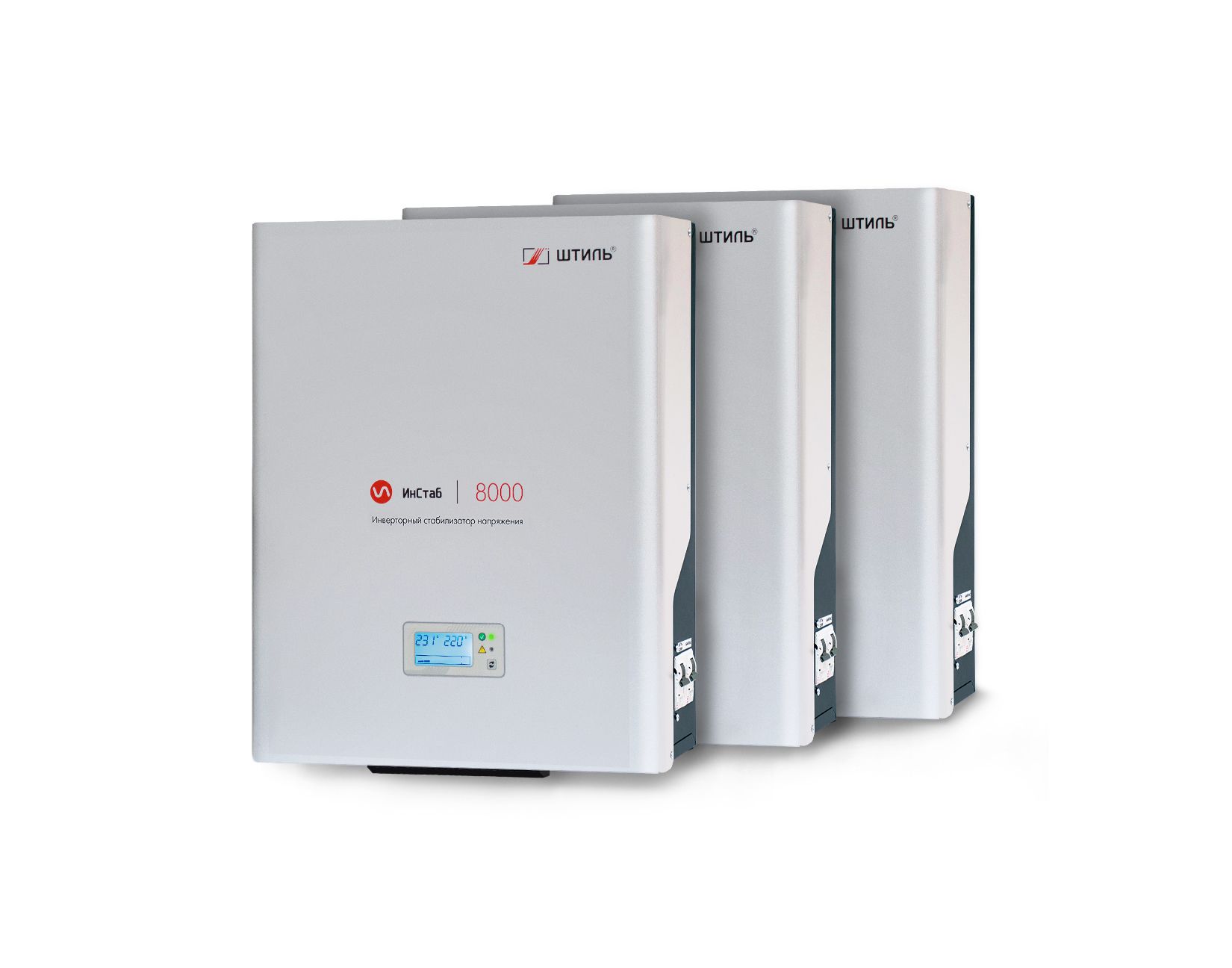 Комплект из трех настенных стабилизаторов IS8000 – это готовое решение по защите от нестабильного сетевого напряжения в сети 380 В однофазных ответственных электроприборов бытового или коммерческого назначения с суммарной потребляемой мощностью до 24 кВА/21,6 кВт, например: