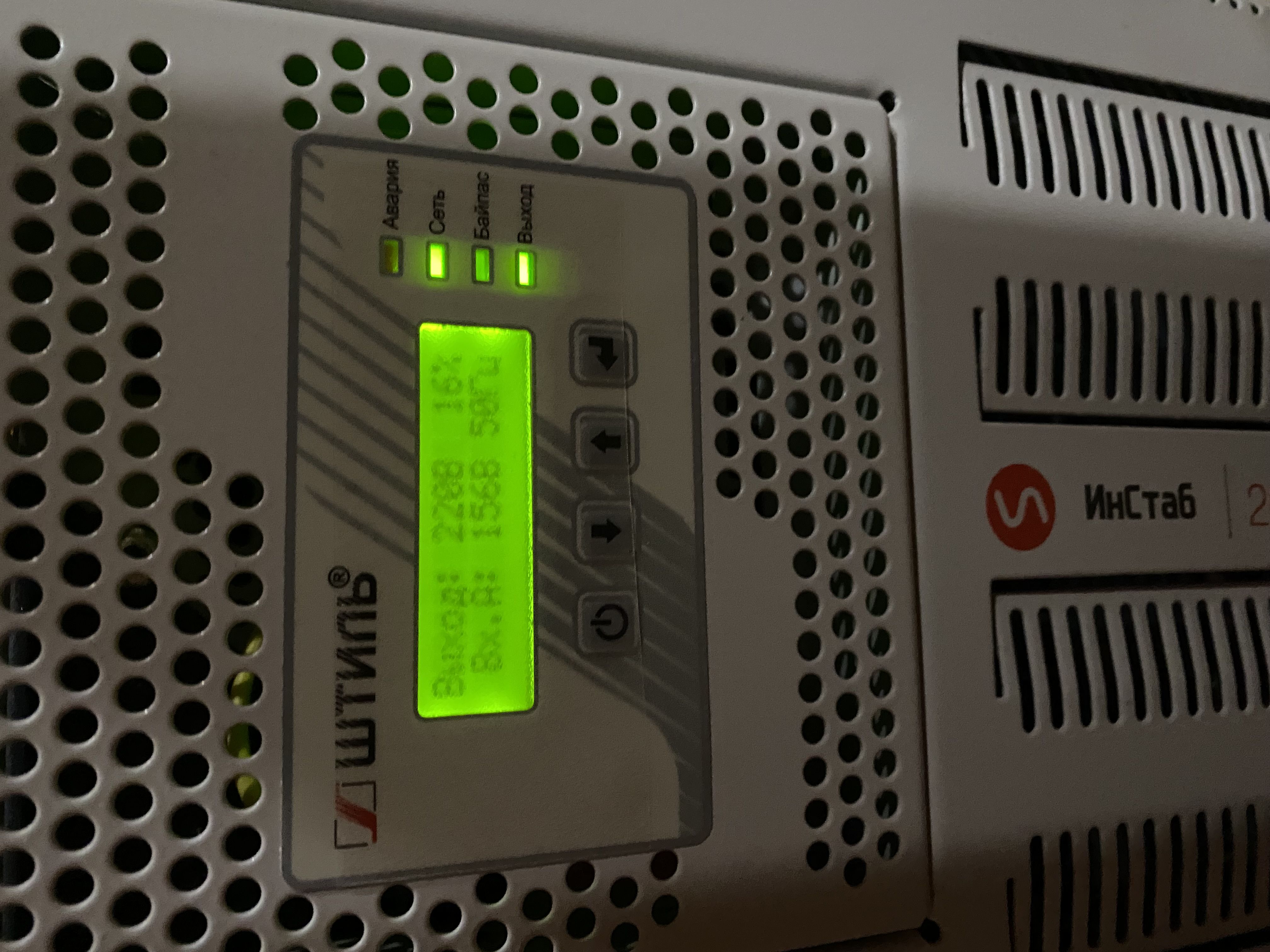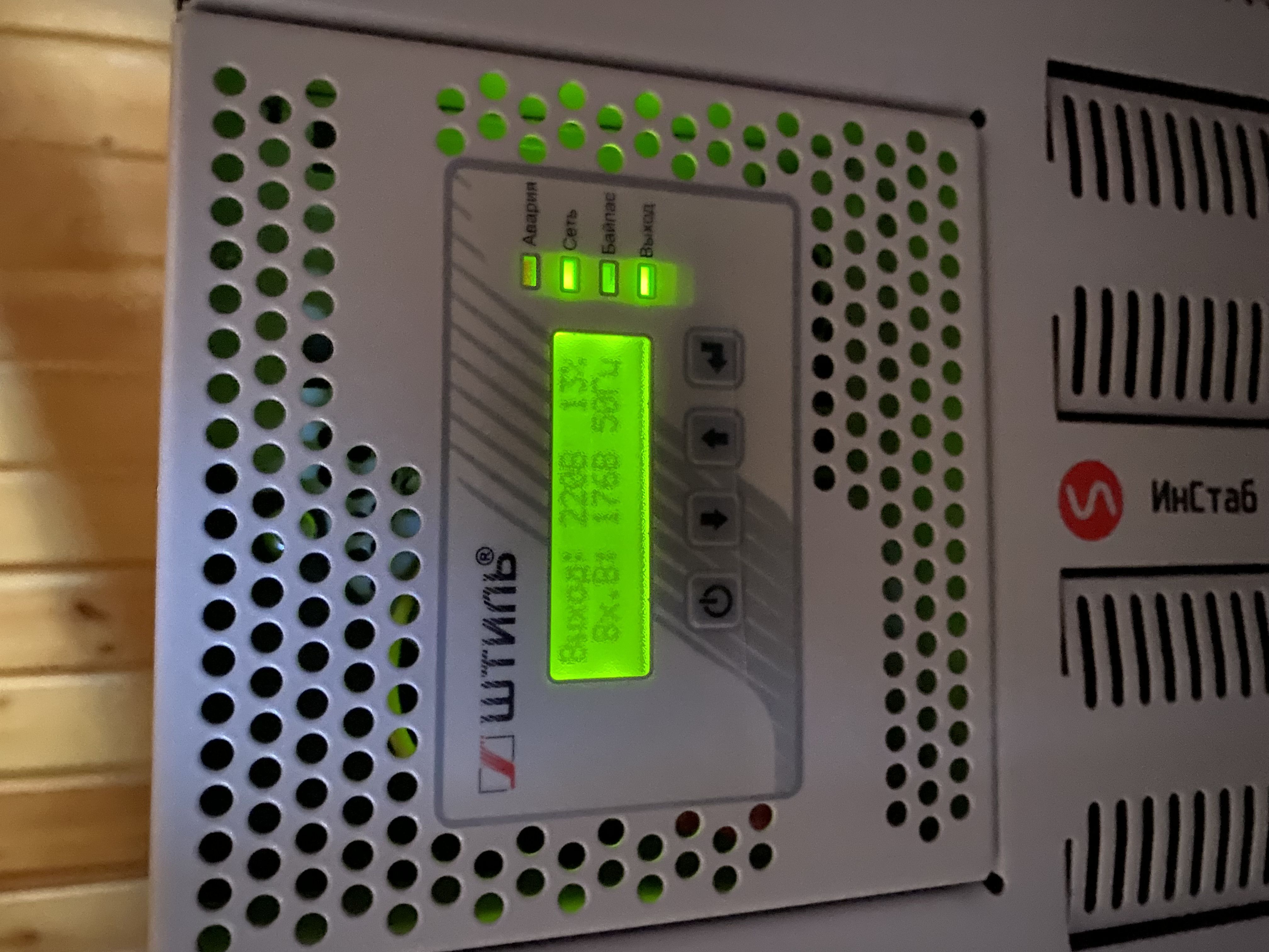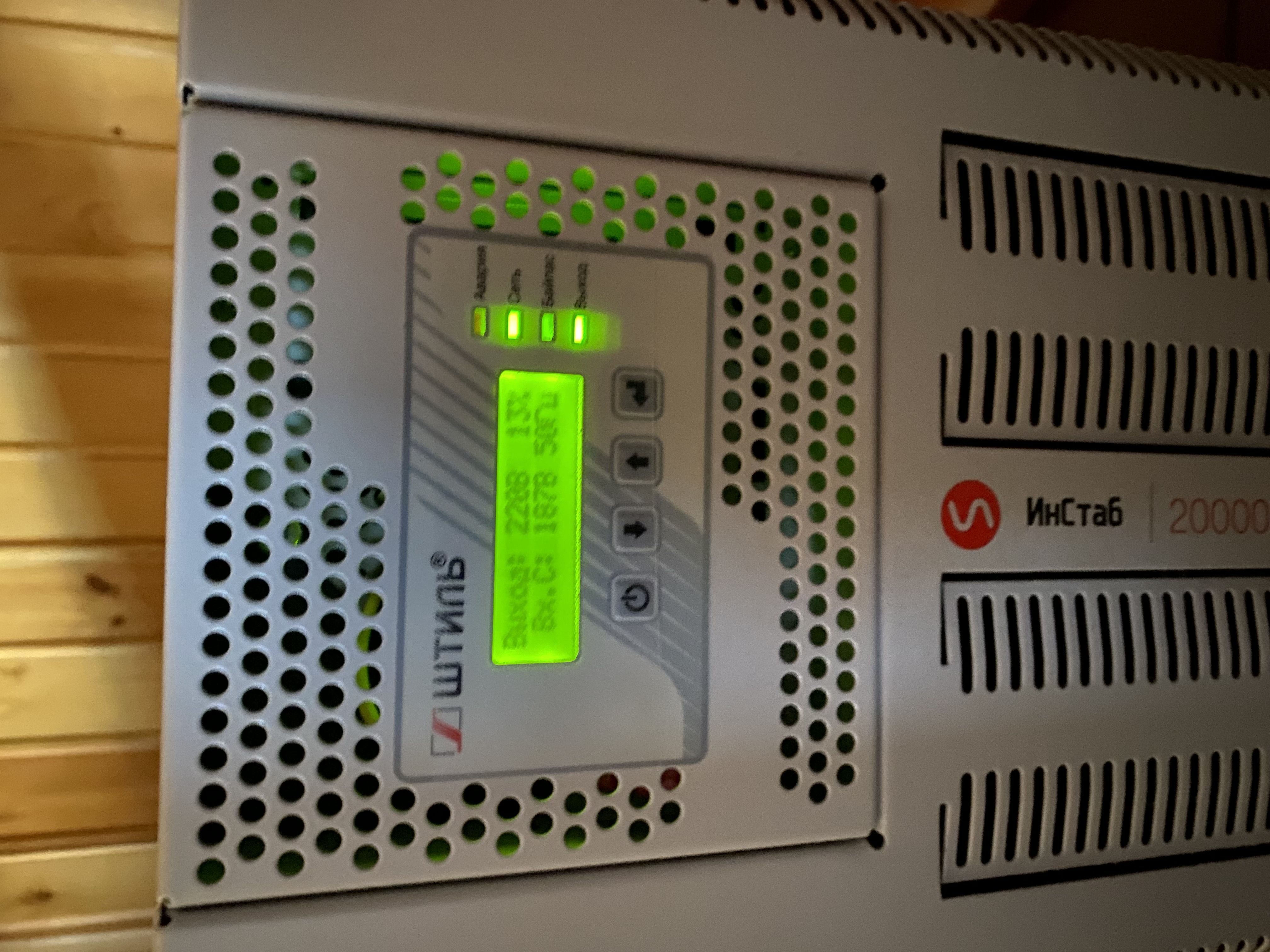 | ЖК-дисплей | входное/выходное напряжение, частота входной сети, процент загрузки, активная и полная мощность нагрузки, режимы работы, аварийные сообщения, внутренняя температура |