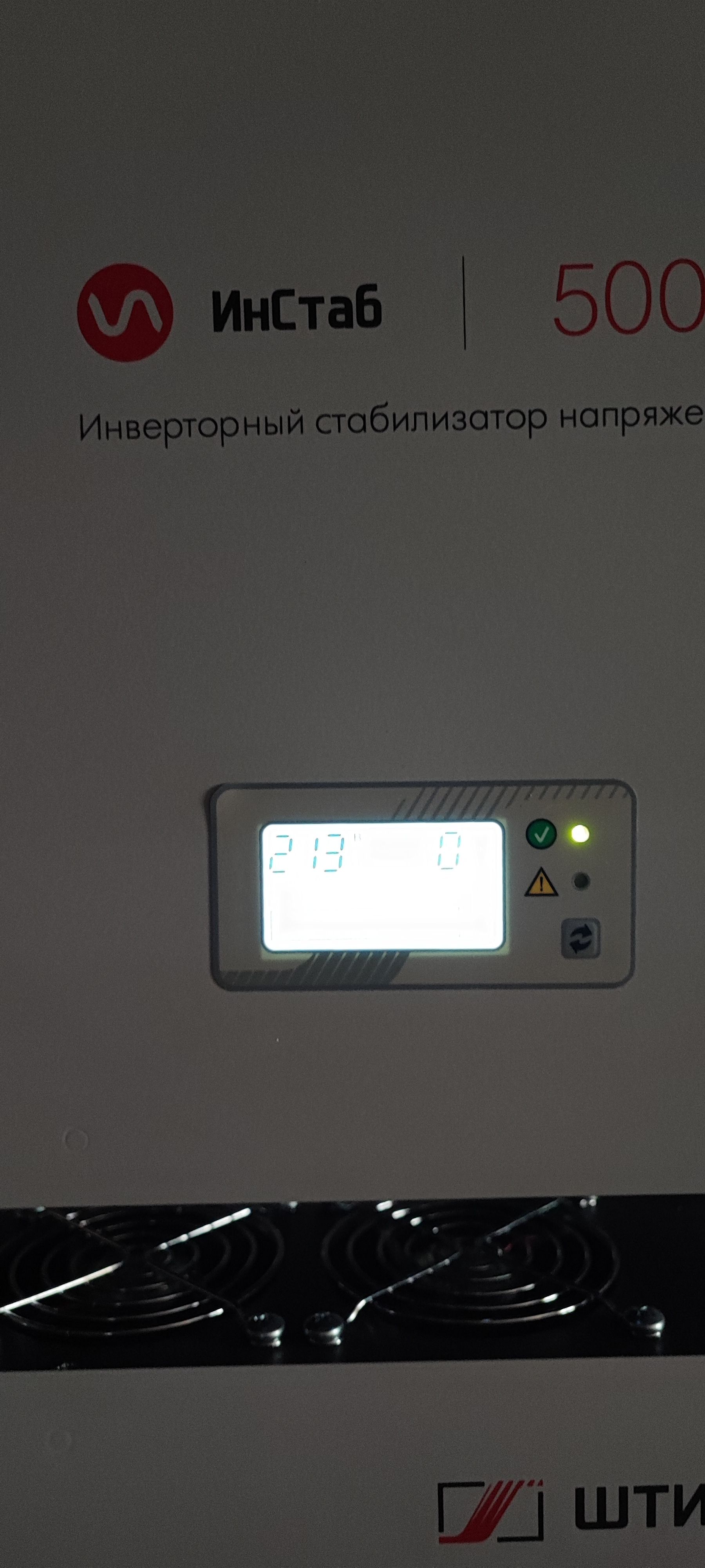 Стабилизатор оснащен панелью управления с ЖК-дисплеем, светодиодными индикаторами и кнопкой управления.