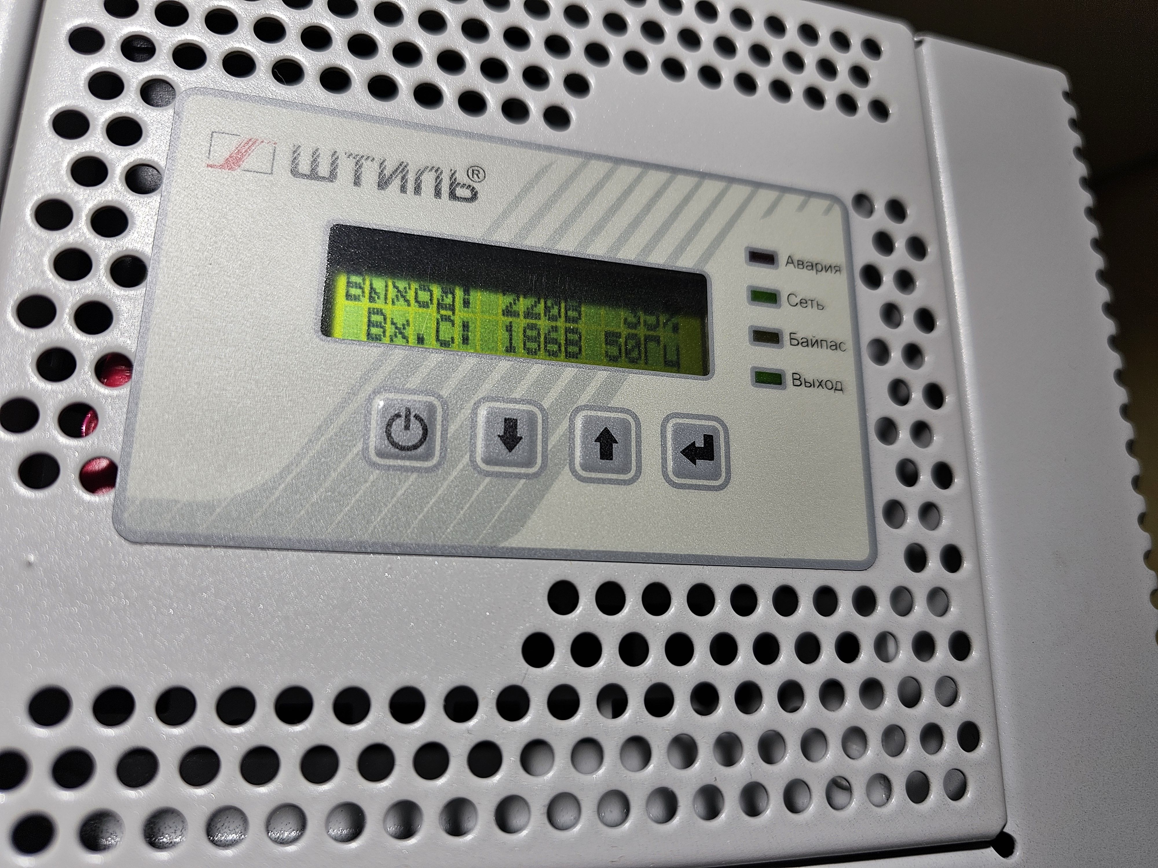 | ЖК-дисплей | входное/выходное напряжение, частота входной сети, процент загрузки, активная и полная мощность нагрузки, режимы работы, аварийные сообщения, внутренняя температура |