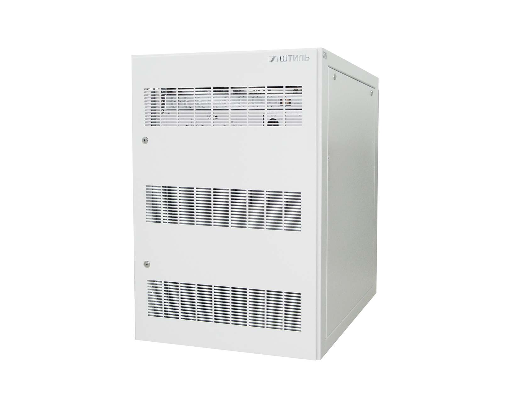 Для удобного доступа к оборудованию имеются несъемные перфорированные боковые стенки. Тип передней двери – перфорированная одностворчатая, оборудованная кулачковым замком с 2-мя независимыми точками фиксации. Тип задней стенки – сплошная.