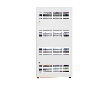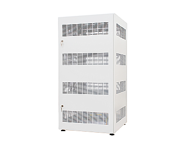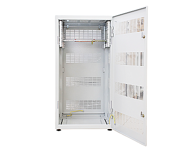 Для удобного доступа к оборудованию имеются несъемные перфорированные боковые стенки. Тип передней двери – перфорированная одностворчатая, оборудованная кулачковым замком с 2-мя независимыми точками фиксации. Тип задней стенки – перфорированная.
