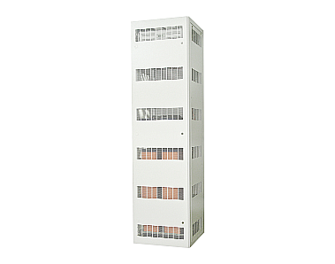 TC-4801-02D4 имеет высоту 48U, габариты основания (ШхГ) – 60х60 см. Шкаф рассчитан на нагрузку до 400 кг, его несущие балки изготовлены из 1,5 мм стали.