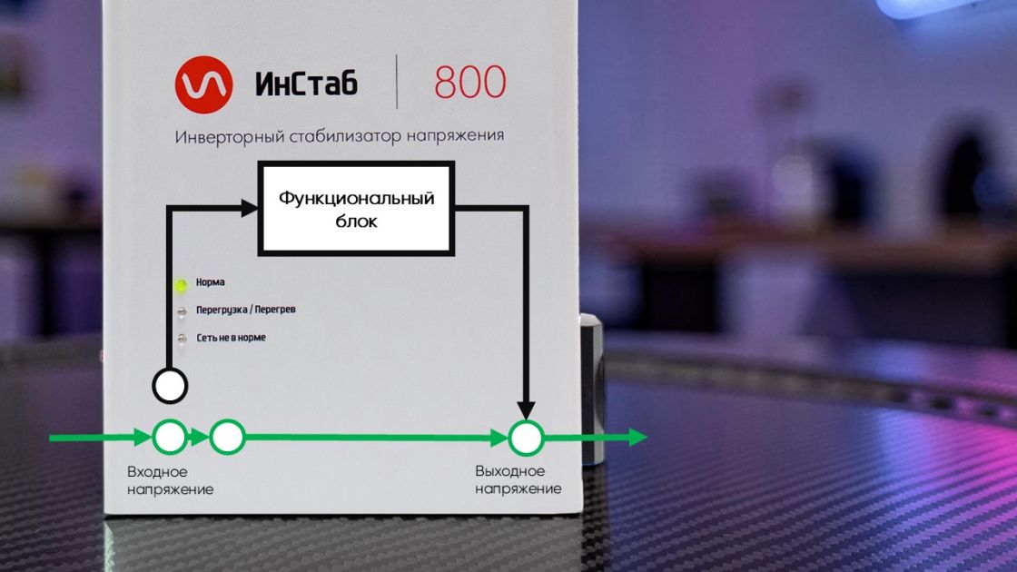 Байпас инверторного стабилизатора – это резервная линия, которая проходит параллельно основной, выполняющей корректировку напряжения. По цепи байпаса ток без изменений проходит транзитом на нагрузку, и стабилизация не выполняется.