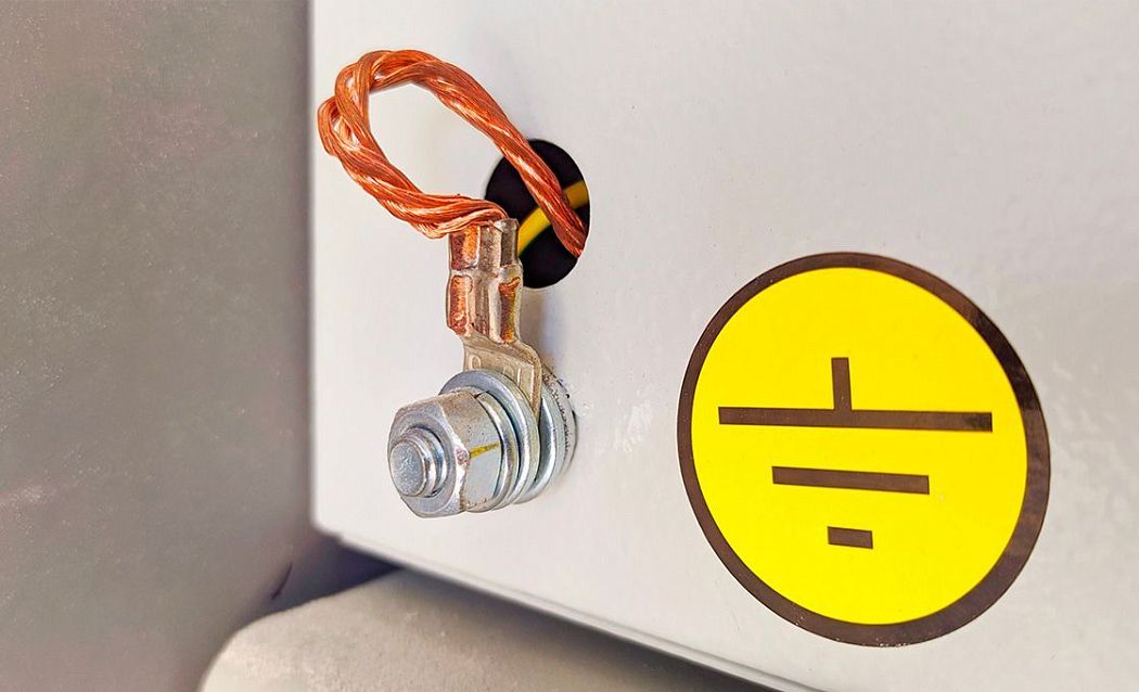Как говорилось выше, все современные электроприборы I класса защиты, у которых возможен пробой тока на внешнюю часть корпуса, (например, водонагреватели, электроплиты, духовки и стиральные машины) имеют евровилки с контактом заземления, которые должны подключаться к трехконтактной розетке. Если провод необходимо подключить к прибору от электрощита напрямую, например, к стабилизатору напряжения или ИБП, то для этого на их корпусе предусмотрена специальная колодка с клеммой заземления.