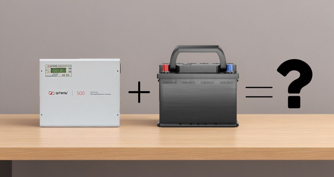 В качестве ИБП для решения нашей задачи выберем настенную модель «Штиль» SW1000L с выходной мощностью 900 Вт, без встроенных батарей, но с поддержкой подключения внешних.