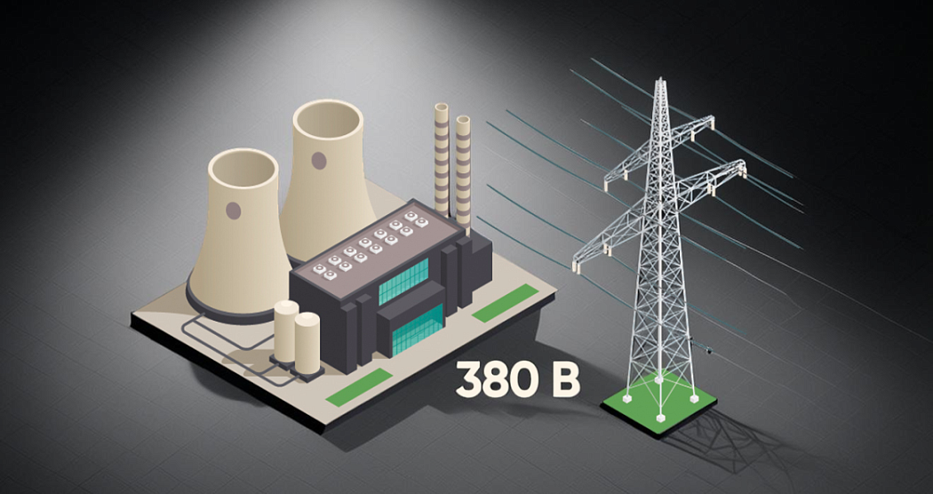 - Электростанция – производит электроэнергию с напряжением от 1 до 35 киловольт путем преобразования энергии источника (воды, тепла или атома) в механическую.
