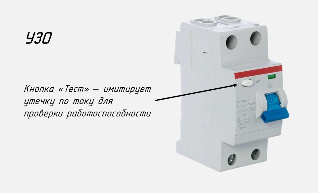 После выполнения монтажа требуется проверить УЗО на исправность. Для этого можно использовать его внутренний функционал. На корпусе изделия есть кнопка с буквой «Т», при нажатии которой УЗО протестирует срабатывание, то есть сымитирует условия утечки тока на линии. Если прибор отключился, то он исправен и готов к работе.
