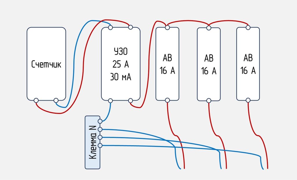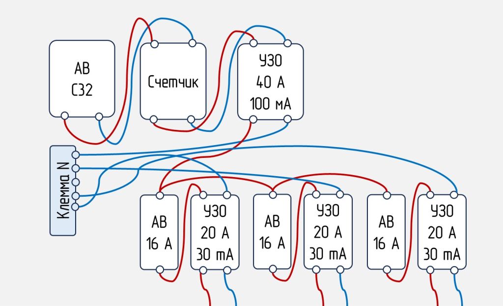 | Установка общего УЗО на вводе и на каждой отдельной группе |